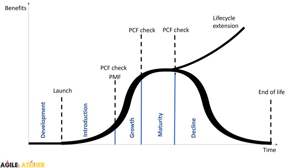 Depending on which stage of the lifecycle the product finds itself in, as well as what sort of product strategy there is for that stage, the values and principles are likely to emerge and be different compared to the previous stage in the curve.